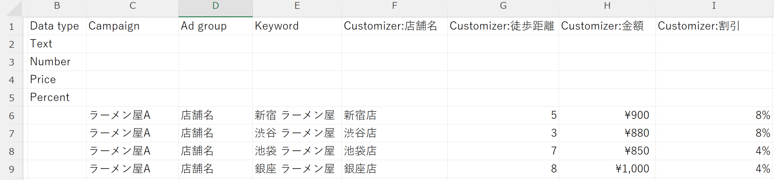 地域ごとに異なるキャンペーン内容を展開している場合や、店舗別に営業時間・最寄り駅・特徴などを細かく出し分けたい場合には、データフィードを活用した広告カスタマイザのほうが柔軟な運用が可能です。